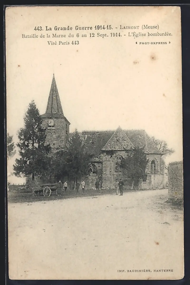 AK Laimont, Bataille de la Marne du 6 au 12 Sept. 1914, l`Eglise bombardee