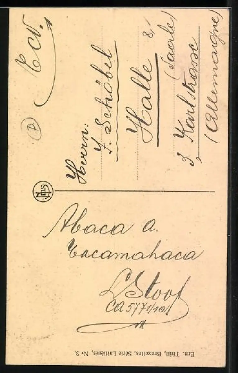 Personenbezogene Daten auf der Rückseite der Karte wurden durch blauen Textmarker unkenntlich gemacht. Die blauen Stellen sind auf die Vorderseite durchgeweicht und wirken sich negativ auf das Postkartenfoto aus