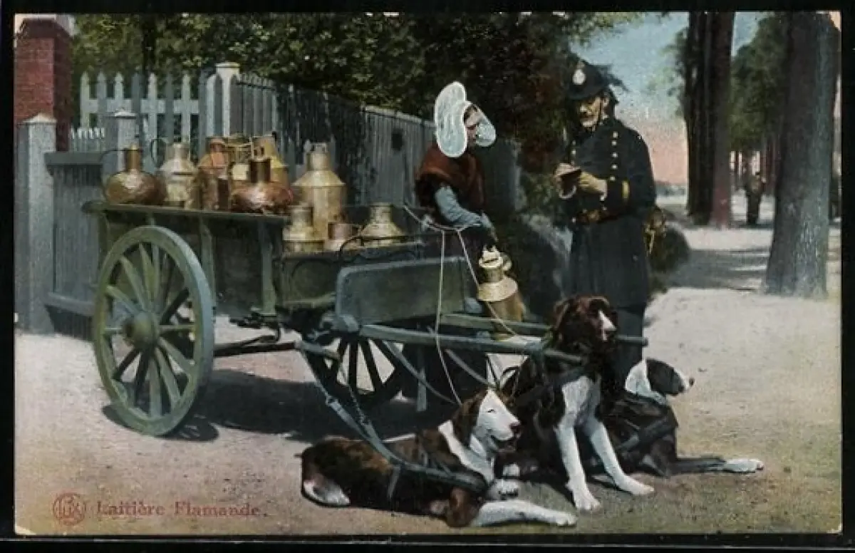 AK Laitiere Flamande, Polizist kontrolliert Frau mit Hundegespann