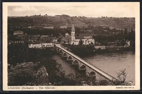 AK Lalinde, Vue générale avec église et pont sur la Dordogne
