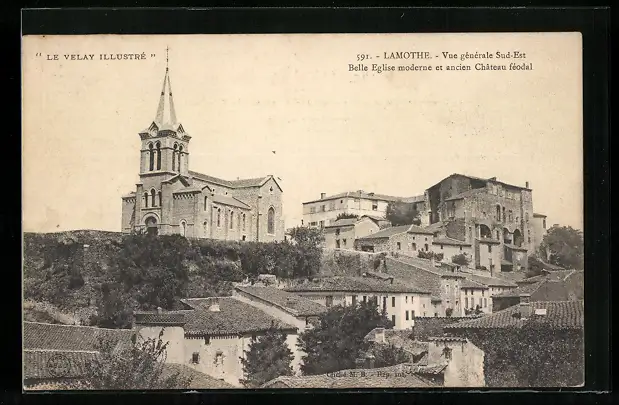 AK Lamothe, Vue generale Sud-Est, Belle Eglise moderne et ancien Chateau feodal