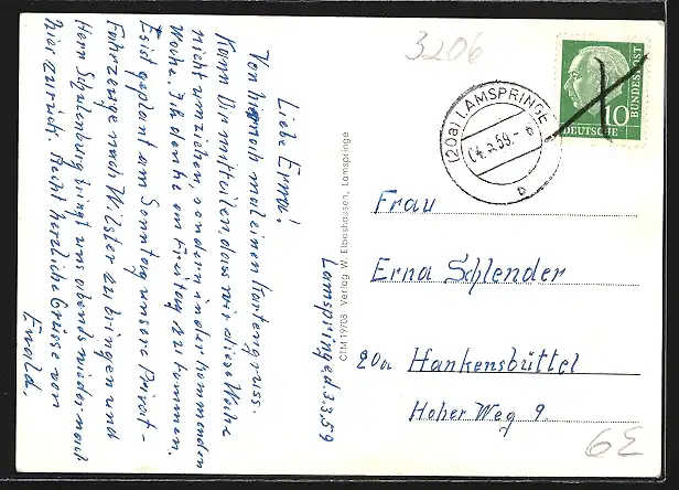 alte Ansichtskarte, gelaufen 1959, guter Zustand