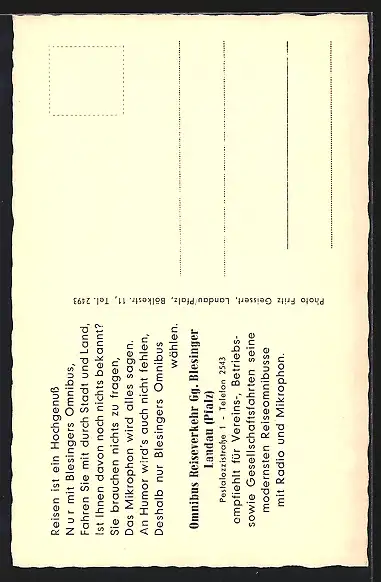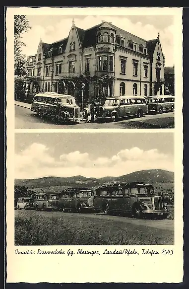 AK Landau / Pfalz, Omnibus-Reiseverkehr gg. Blesinger