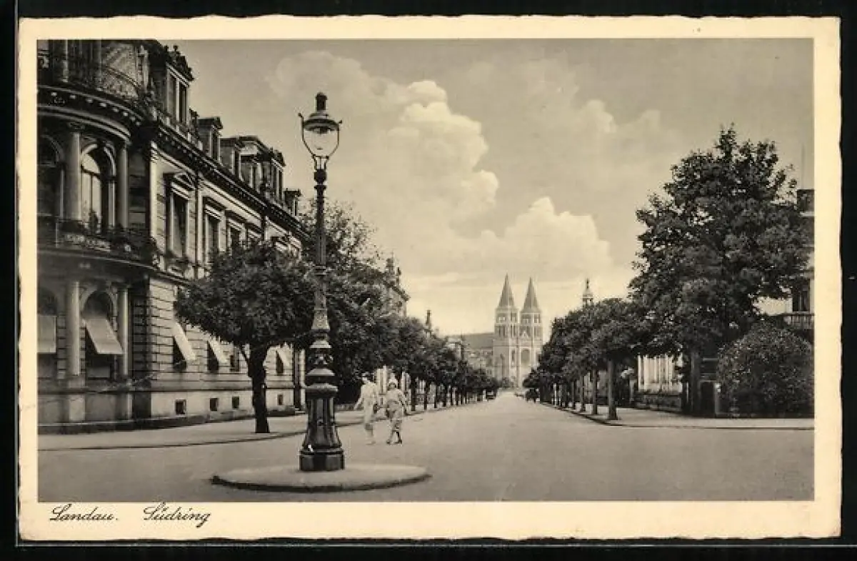 AK Landau / Pfalz, Südring, Strassenszene mit Blick auf Kirche