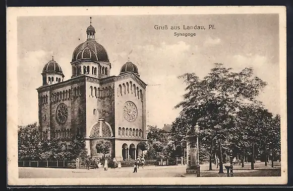 AK Landau i.d. Pfalz, Synagoge, davor Litfasssäule