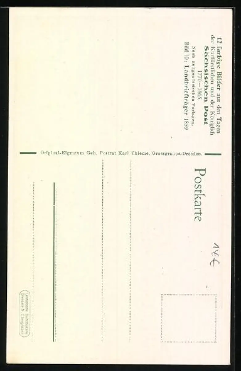 AK Landbriefträger d. Kgl. Sächsischen Post 1859, Dame mit Schirm