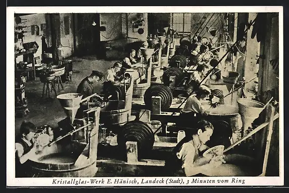 AK Landeck, Kristallglas-Werk E. Hähnisch mit Arbeitern