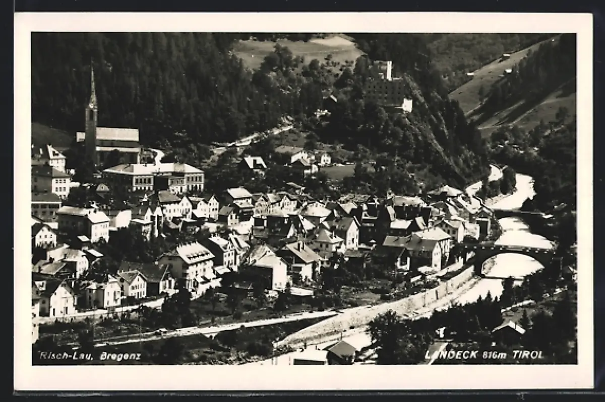 AK Landeck /Tirol, Totalansicht mit Brücken aus der Vogelschau