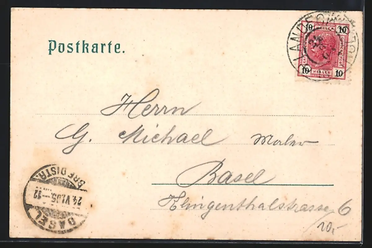 alte Ansichtskarte, gelaufen 1905, Stempelspur, guter Zustand