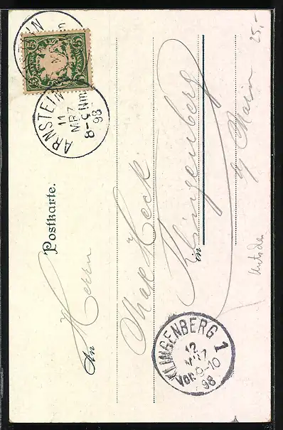 alte Ansichtskarte, gelaufen 1898, guter Zustand