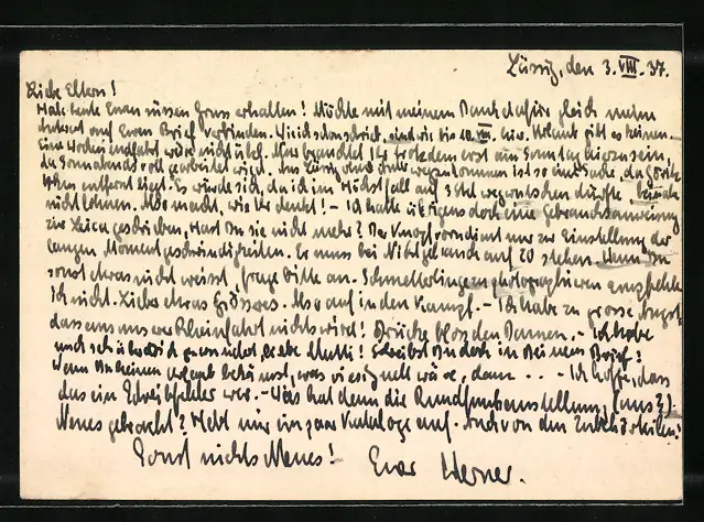 alte Ansichtskarte, gelaufen 1937, Bugspur re. oben, Eckknick re. unten, guter Zustand