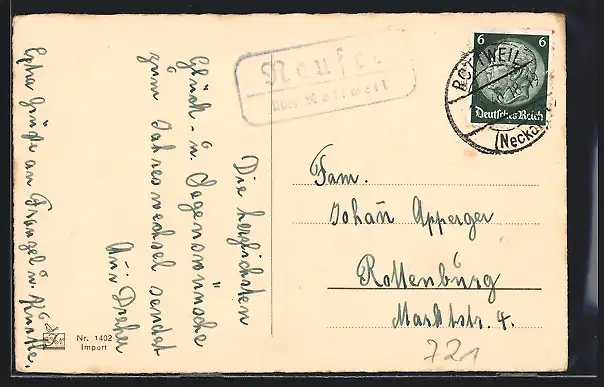 AK Landpoststempel Neufra über Rottweil