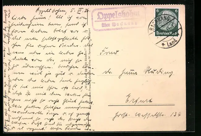 gelaufen 1936, Eckknicke links u. rechts oben und rechts unten, Bugspuren am rechten und linken Rand, guter Zustand