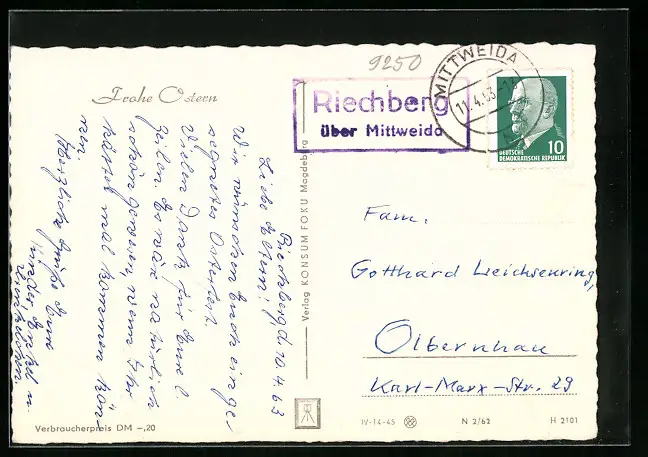 AK Landpoststempel Riechberg über Mittweida