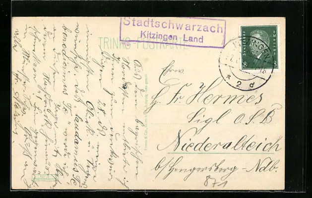 AK Landpoststempel Stadtschwarzach /Kitzingen Land