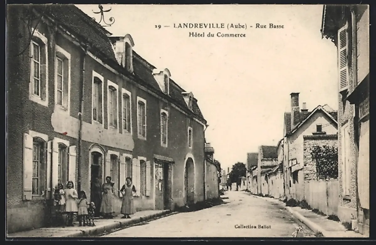 AK Landreville /Aube, Rue Basse avec Hôtel du Commerce et habitants devant les maisons