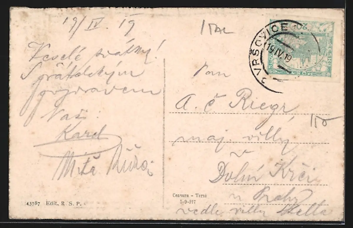 alte Ansichtskarte, gelaufen 1919, obere Kante beschnitten