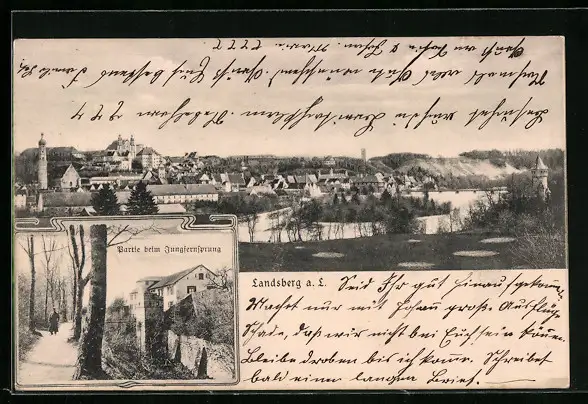 AK Landsberg a. L., Gesamtansicht, Partie beim Jungfernsprung