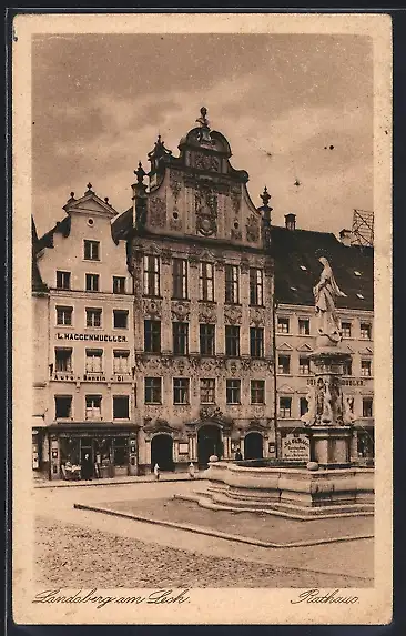 AK Landsberg am Lech, Rathaus mit Brunnen