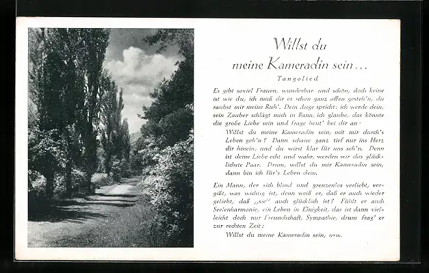 AK Landschaftsbild, Text des Tangoliedes Willst du meine Kameradin sein...
