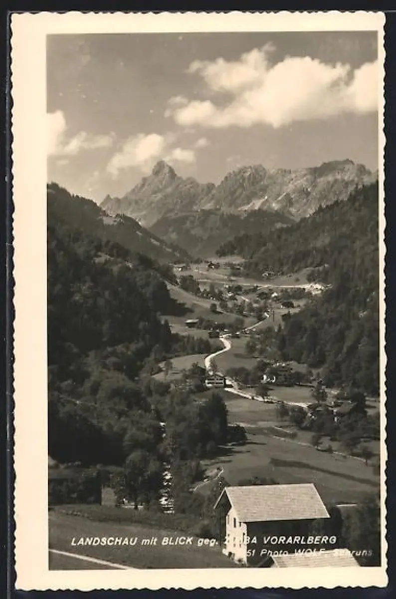 AK Landschau /Vorarlberg, Ortspartie mit Blick gegen Zimba