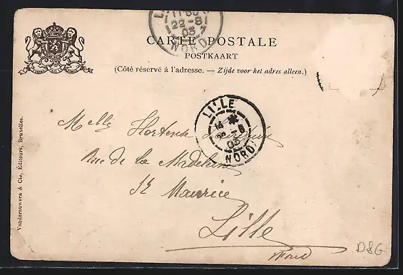 alte Ansichtskarte, gelaufen 1903, Briefmarke entfernt, rückseitig Oberflächenschaden, Eckknicke re. und unten li., guter Zustand