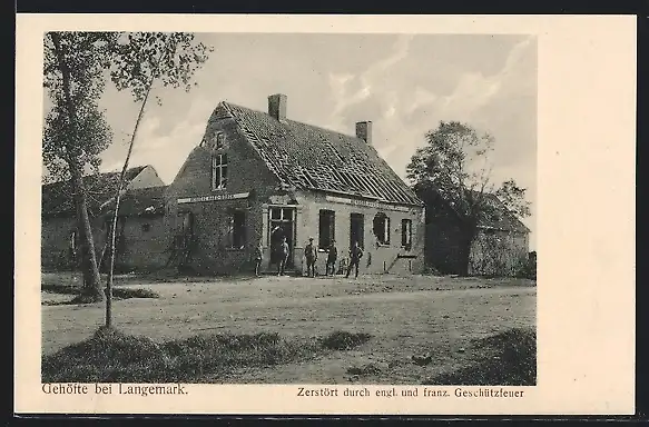 AK Langemark, Gehöft zerstört druch engl. & französ. Geschützfeuer