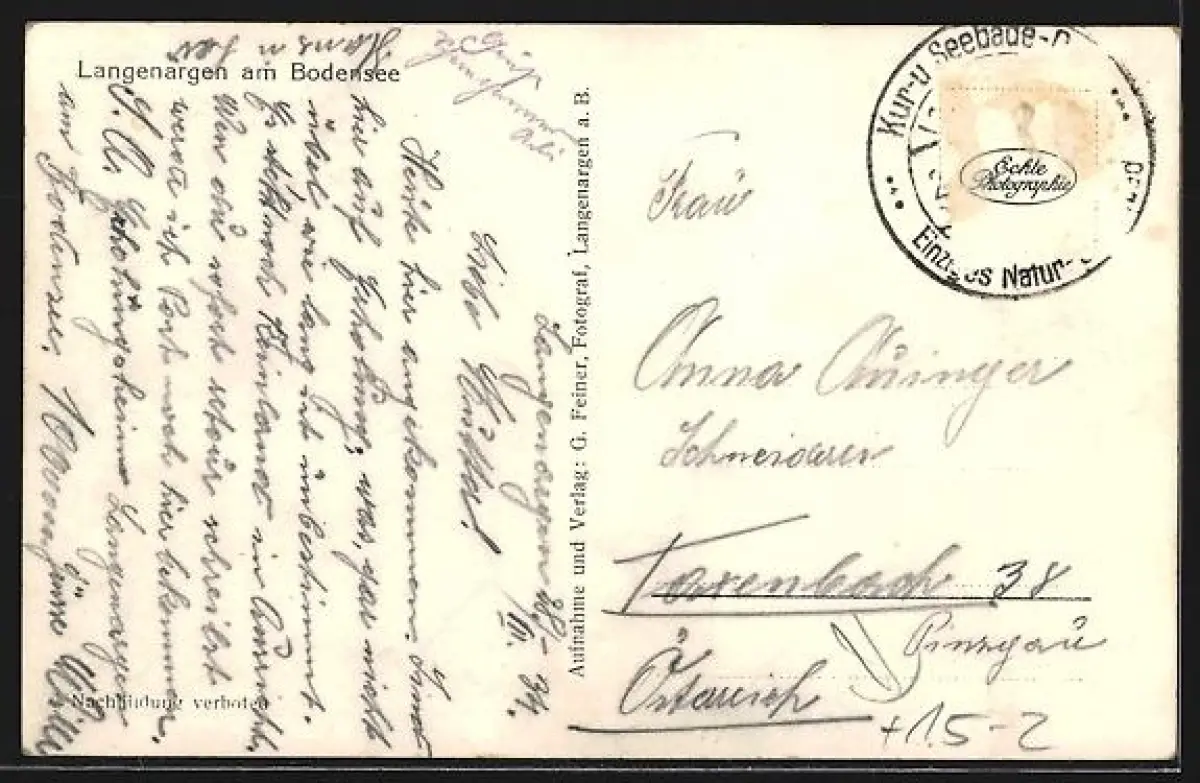 Personenbezogene Daten auf der Rückseite der Karte wurden durch blauen Textmarker unkenntlich gemacht. Die blauen Stellen sind auf die Vorderseite durchgeweicht und wirken sich negativ auf das Postkartenfoto aus