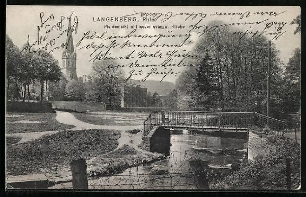 AK Langenberg /Rhld., Pferdemarkt, neue evang. Kirche