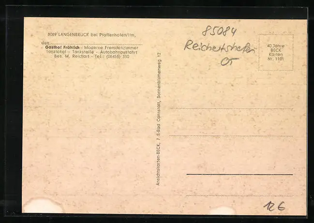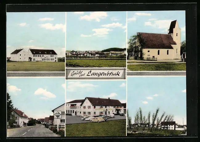 AK Langenbruck b. Pfaffenhofen, Gasthof Fröhlich, Aral-Tankstelle, Kirche