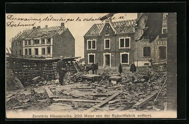 AK Langendreer, Zerstörte Häuserreihe nahe der Roburitfabrik, Explosion