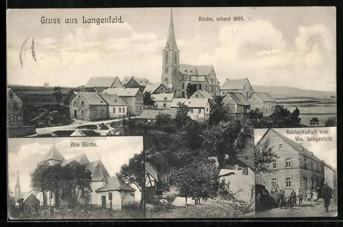 AK Langenfeld / Rheinland, Teilansicht mit Kirche, Alter Kirche und Gasthof von Ww. Langenfeld