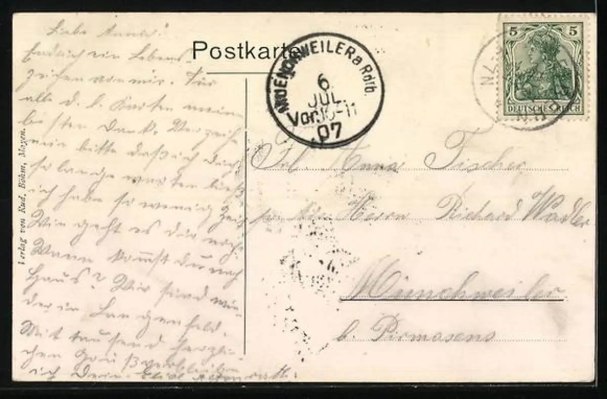 alte Ansichtskarte, gelaufen 1907, Stempelspur, guter Zustand