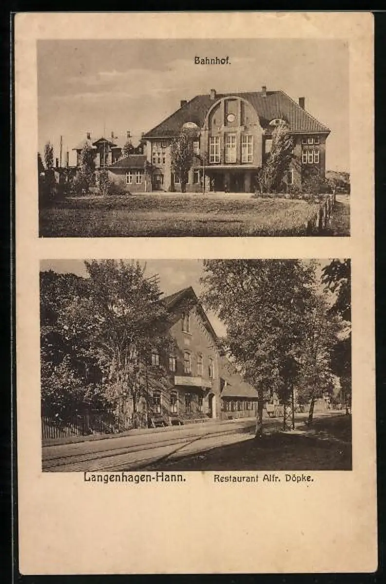 AK Langenhagen-Hann., Restaurant Alfr. Döpke und Bahnhof