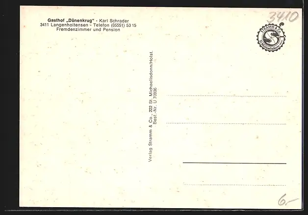 AK Langenholtensen, Gasthof Dünenkrug, Bes. Karl Schrader, Aussen- und Innenansicht, Ortspanorama