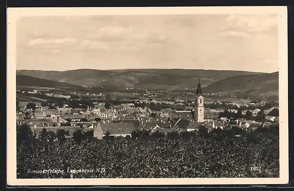 AK Langenlois, Blick über die Dächer auf die Kirche