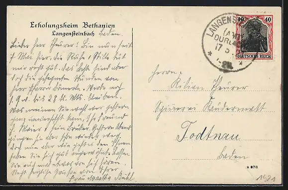 alte Ansichtskarte, gelaufen 1921, minimaler Einriss re. mittig, guter Zustand