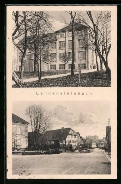 AK Langensteinbach, Ortsansicht mit Brunnen
