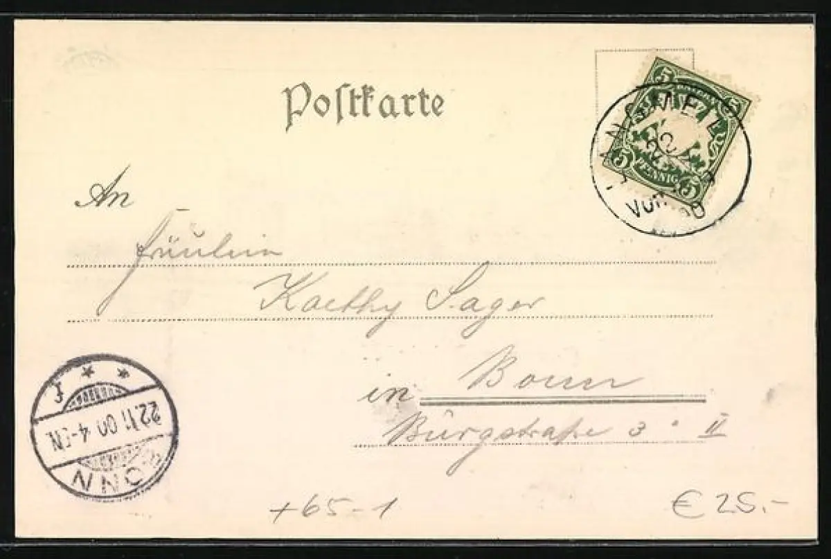 alte Ansichtskarte, gelaufen 1900, guter Zustand