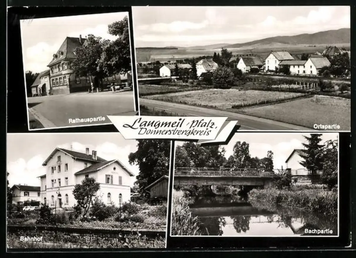 AK Langmeil, Rathaus, Bahnhof, Bach, Ortspartie