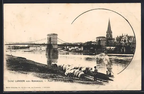 AK Langon, Pont suspendu sur la Garonne et troupeau de moutons