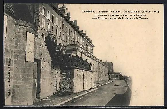 AK Langres, Le Grand Séminaire transformé en caserne 1914, tour et bâtiment démolis pour la cour