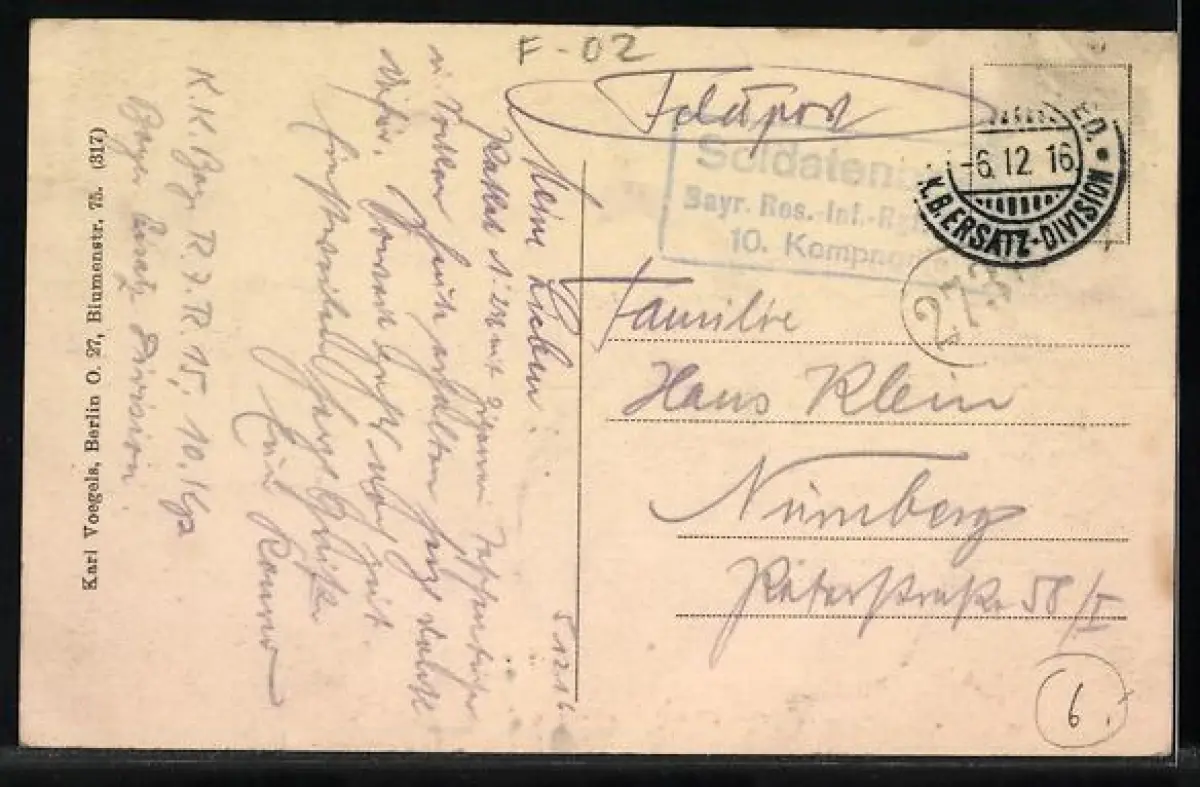 alte Ansichtskarte, gelaufen 1916, Stempelspur, guter Zustand