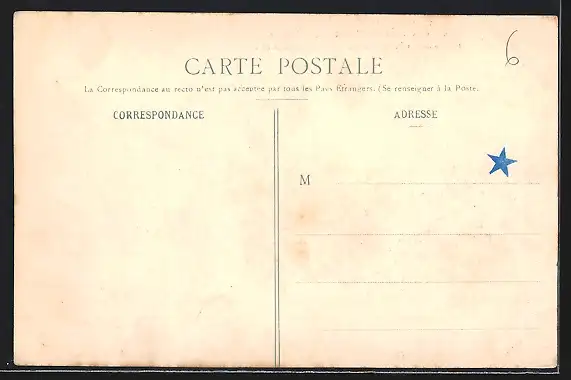Personenbezogene Daten auf der Rückseite der Karte wurden durch blauen Textmarker unkenntlich gemacht. Die blauen Stellen sind auf die Vorderseite durchgeweicht und wirken sich negativ auf das Postkartenfoto aus