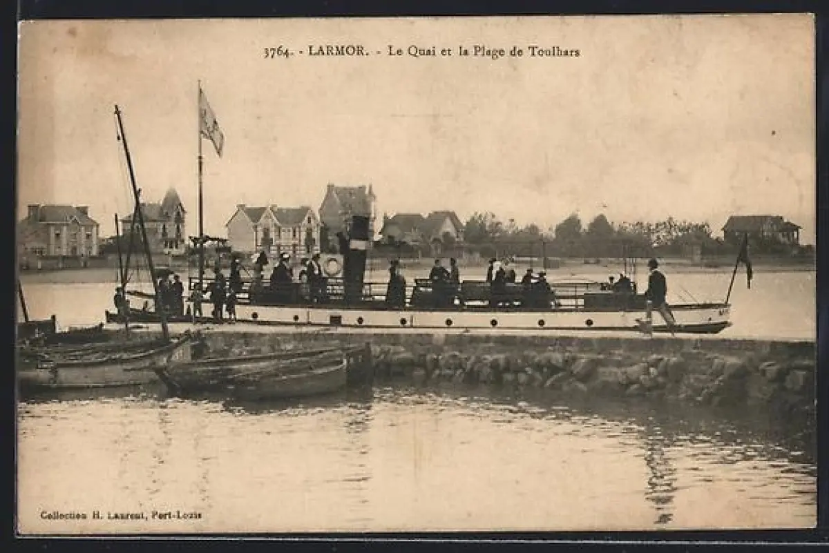 AK Larmor, Le Quai et la Plage de Toulhars avec bateau et passagers