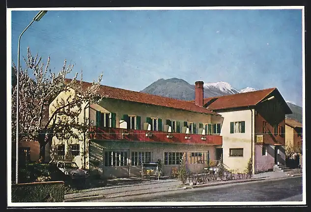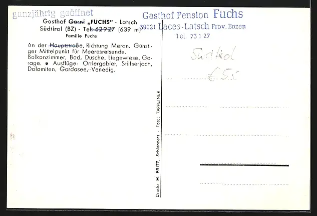 AK Latsch, Gasthaus Garni Fuchs an der Hauptstrasse, Richtung Meran