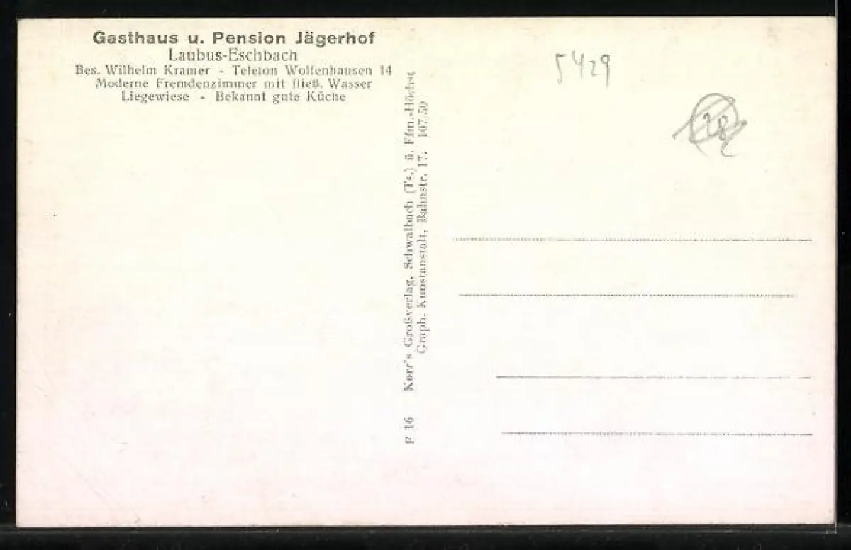 AK Laubus-Eschbach /Oberlahn, Gasthaus und Pension Jägerhof, Bes. Wilhelm Kramer