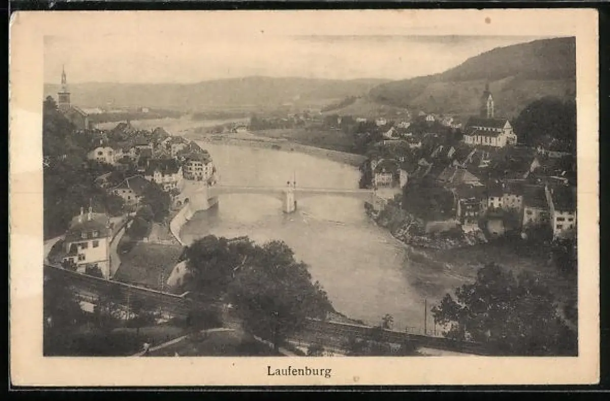 AK Laufenburg, Blick auf Fluss und Stadt