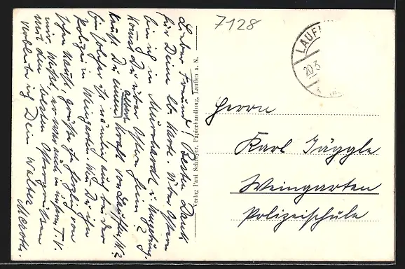 alte Ansichtskarte, gelaufen, Briefmarke entfernt, guter Zustand