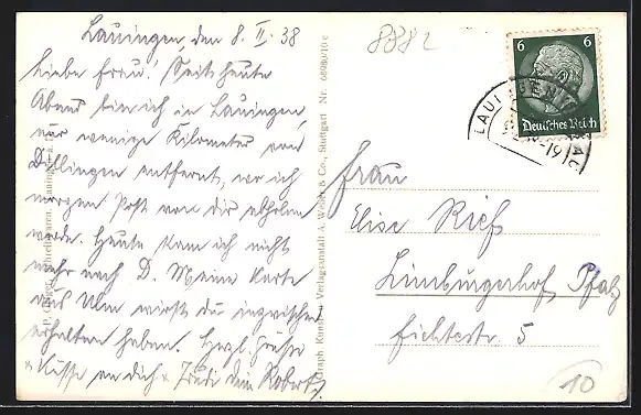 alte Ansichtskarte, gelaufen 1938, guter Zustand